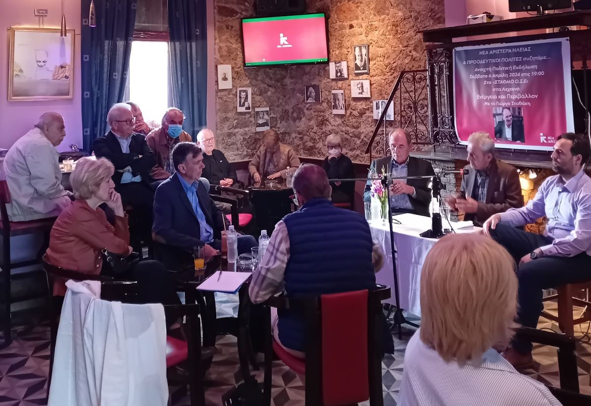 ανοιχτή πολιτική εκδήλωση της Νέας Αριστεράς και προοδευτικών πολιτών με θέμα «Ενέργεια και Περιβάλλον». Κεντρικός ομιλητής ήταν ο Γιώργος Σταθάκης, ενώ στο πάνελ συμμετείχαν ο Τάκης Λαϊνάς και ο Σπύρος Σιδηροκαστρίτης. Παρεμβάσεις έγιναν από τη βουλεύτρια της Νέας Αριστεράς Σία Αναγνωστοπούλου, τον Περιφερειακό Σύμβουλο Κώστα Διαμαντόπουλο, τον πρώην Περιφερειακό
