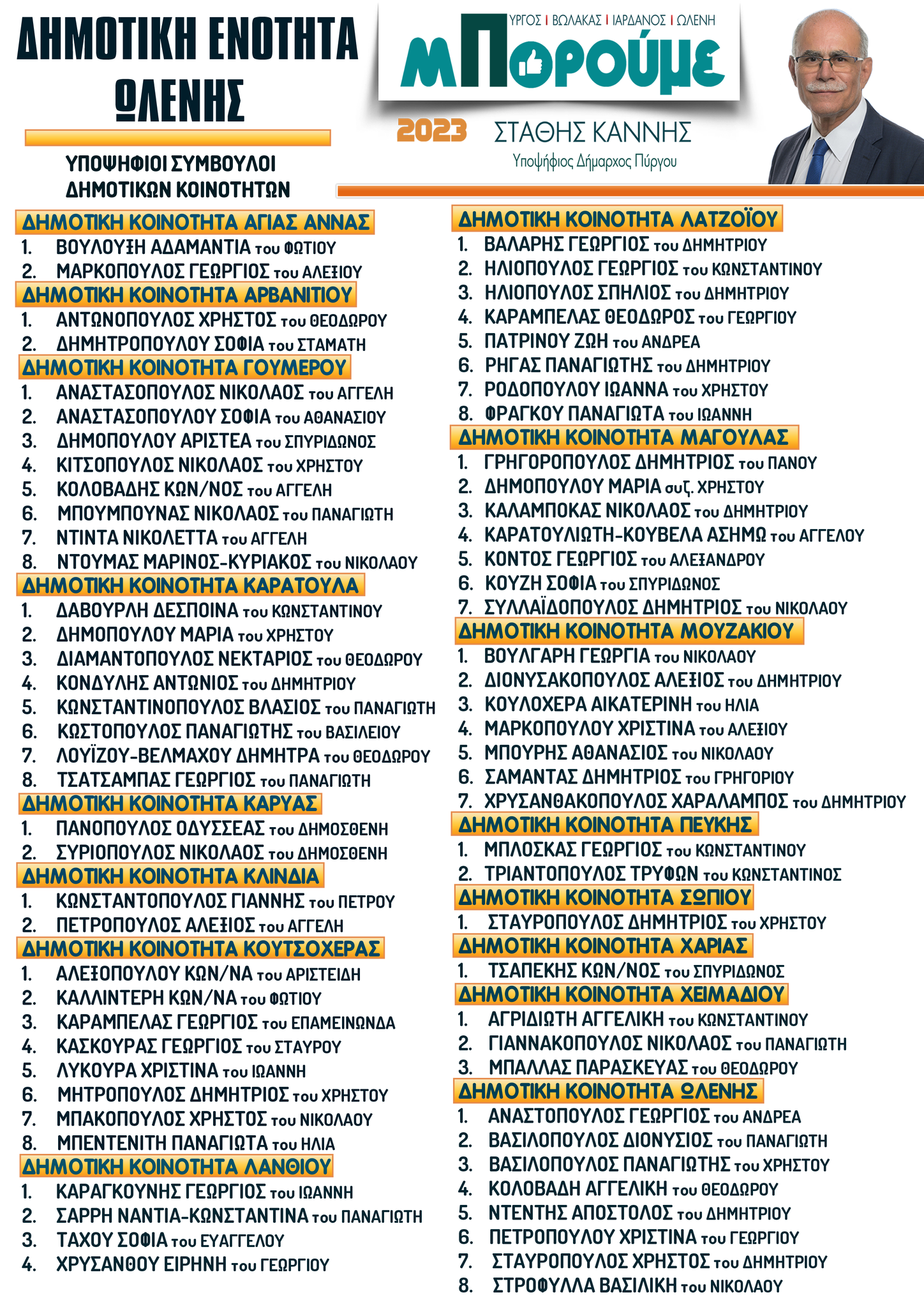 Στάθης Καννής: Παρουσίαση υποψηφιοτήτων στις κοινότητες Δήμου Πύργου