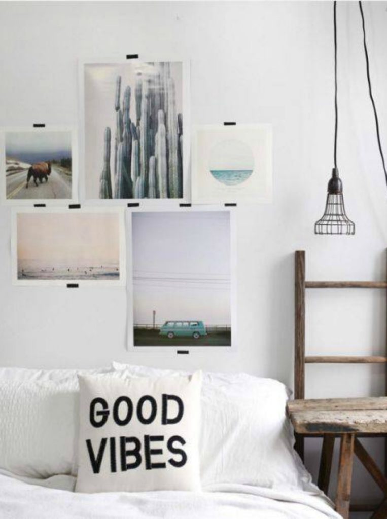 Αντί για κεφαλάρι Το κεφαλάρι συνήθως πιάνει λίγο παραπάνω χώρο σε ένα δωμάτιο και ειδικά αν το υπνοδωμάτιό σας είναι μικροσκοπικό, τότε σίγουρα ακόμα και μερικά εκατοστά χώρου είναι χρήσιμα για εσάς. Μια καλή λύση είναι να τοποθετήσετε στον τοίχο κάποια posters ή ίσως να εκτυπώσετε κάποιες δικές σας φωτογραφίες. Φτιάξτε, λοιπόν, μια αυτοσχέδια gallery και βάλτε την κάθε φωτογραφία σε καδράκι ή τοποθετήστε την στον τοίχο με λίγη μαύρη αυτοκόλλητη ταινία που δίνει στιλ.