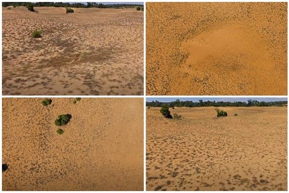 Πρόκειται για τις Θίνες Βαρθολομιού, ένα τοπίο όπου η άμμος καλύπτει τα πάντα και η βλάστηση είναι ελάχιστη.