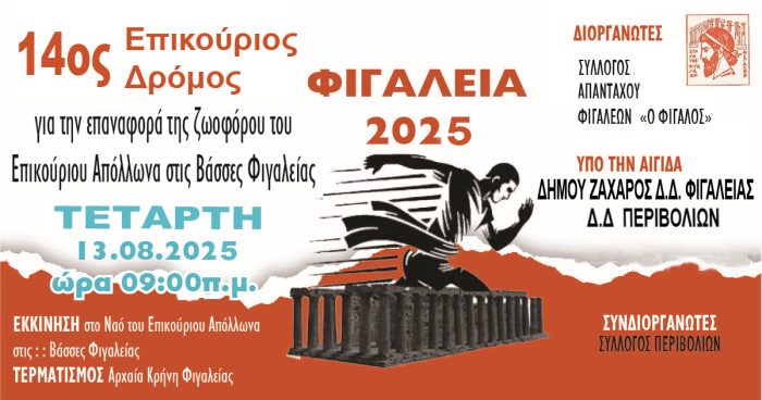 14 ος ΑΓΩΝΑΣ ΕΠΙΚΟΥΡΙΟΥ ΔΡΟΜΟΥ ΓΙΑ ΦΙΓΑΛΕΙΑ 2025 ΑΦΙΕΡΩΜΕΝΟΣ ΓΙΑ ΤΗΝ ΕΠΙΣΤΡΟΦΗ ΤΗΣ ΖΩΟΦΟΡΟΥ ΤΟΥ ΕΠΙΚΟΥΡΙΟΥ ΑΠΟΛΛΩΝΑ