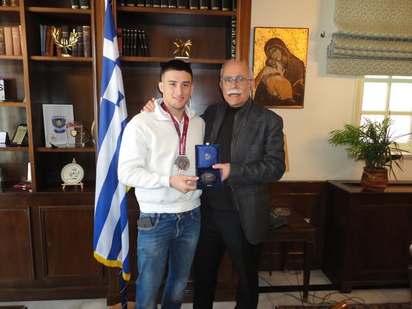 Ο εξ Ηλείας ορμώμενος 18χρονος αθλητής του Π.Σ. « Τιτάν Πύργου» με δύο τεράστιες νίκες επί μεγαλύτερων ηλικιακά άρα και πιο έμπειρων αντιπάλων, ανέβηκε στο βάθρο των νικητών. Επιστρέφοντας στον Πύργο, φορώντας το χάλκινο μετάλλιο στο στήθος, συνοδευόμενος από τον πατέρα του και προπονητή του Αλέξιο Κολιτσόπουλο συναντήθηκε με τον Δήμαρχο κ. Στάθη Καννή μετά από πρόσκληση του δευτέρου.