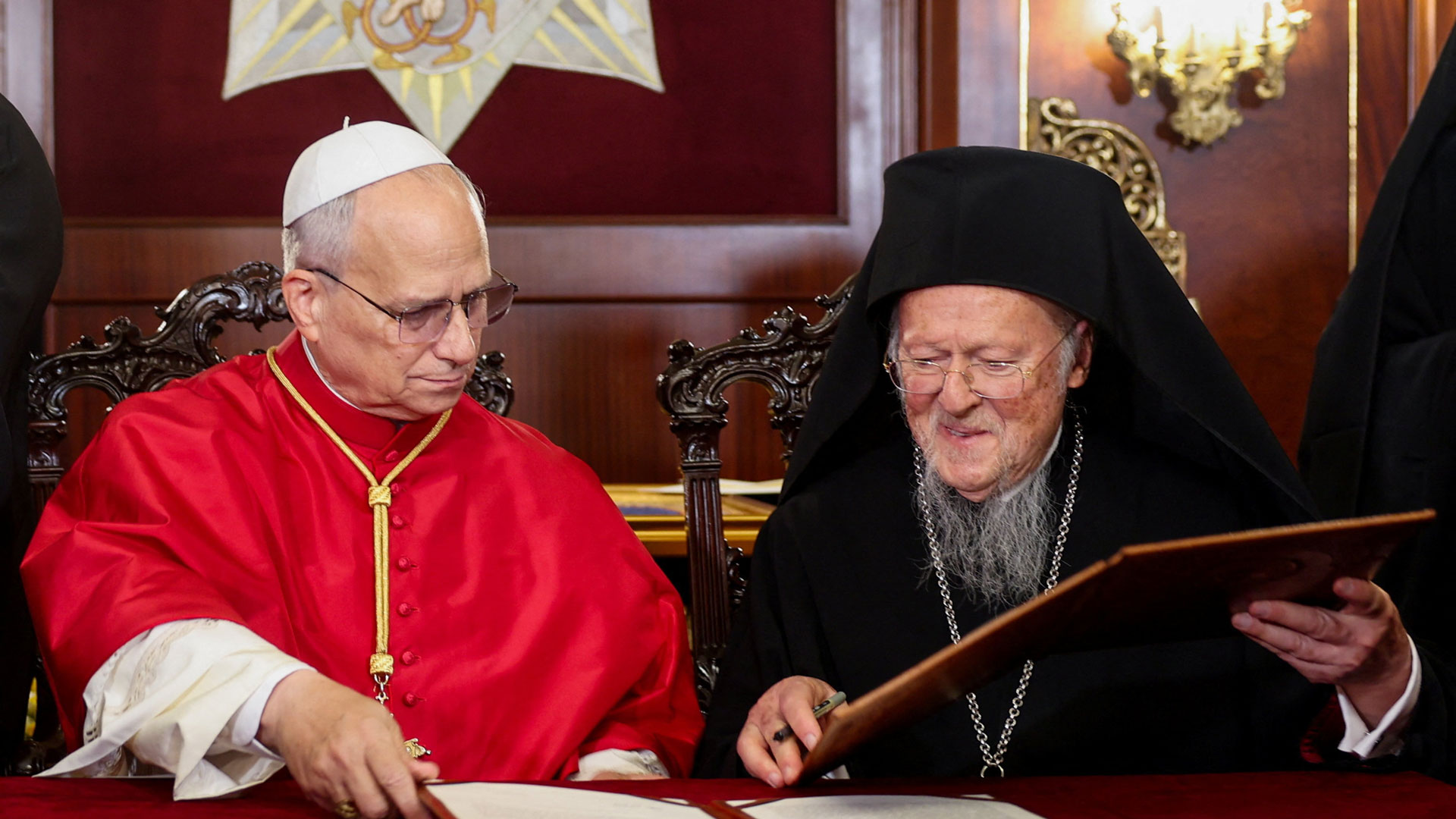 Ιστορικές στιγμές εκτυλίσσονται στο Φανάρι, καθώς οι δύο προκαθήμενοι της Χριστιανοσύνης, ο Πάπας Λέων ο ΙΔ’ και ο Οικουμενικός Πατριάρχης Βαρθολομαίος χοροστατούν στη Δοξολογία στον πατριαρχικό ναό του Αγίου Γεωργίου, στο Φανάρι.