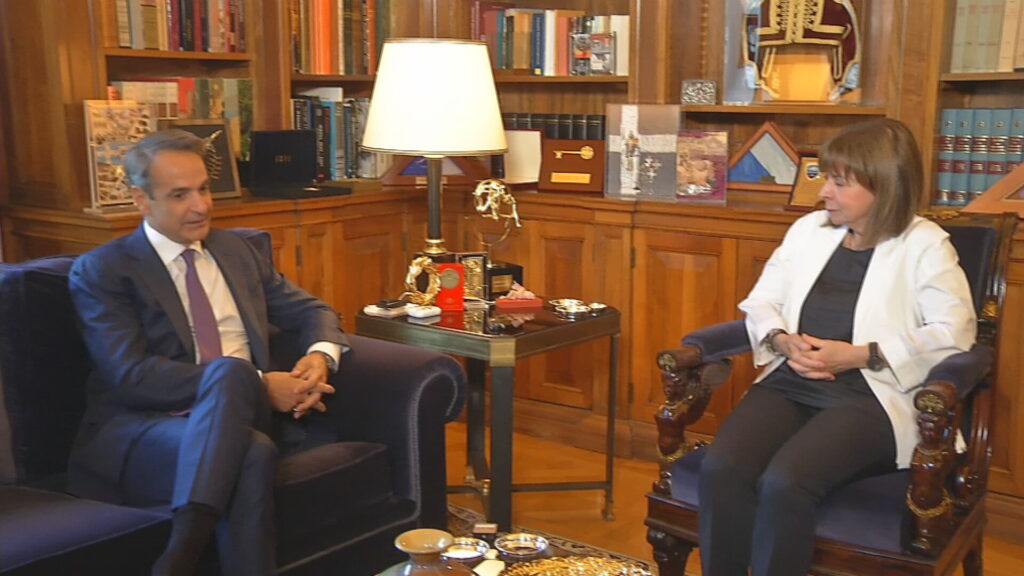 Σε απευθείας σύνδεση του ertnews.gr με το Προεδρικό Μέγαρο η συνάντηση της Προέδρου της Δημοκρατίας με τον πρόεδρο της ΝΔ Κυριάκο Μητσοτάκη ο οποίος παρέλαβε από την Κατερίνα Σακελλαροπούλου την εντολή σχηματισμού κυβέρνησης. Στην Πρόεδρο της Δημοκρατίας παρέδωσε νωρίτερα τα επίσημα εκλογικά αποτελέσματα ο Πρόεδρος της Βουλής Κωνσταντίνος Τασούλας, ενώ στις 13:00 θα πραγματοποιηθεί η ορκωμοσία του νέου Πρωθυπουργού ενώπιον της Προέδρου της Δημοκρατίας.