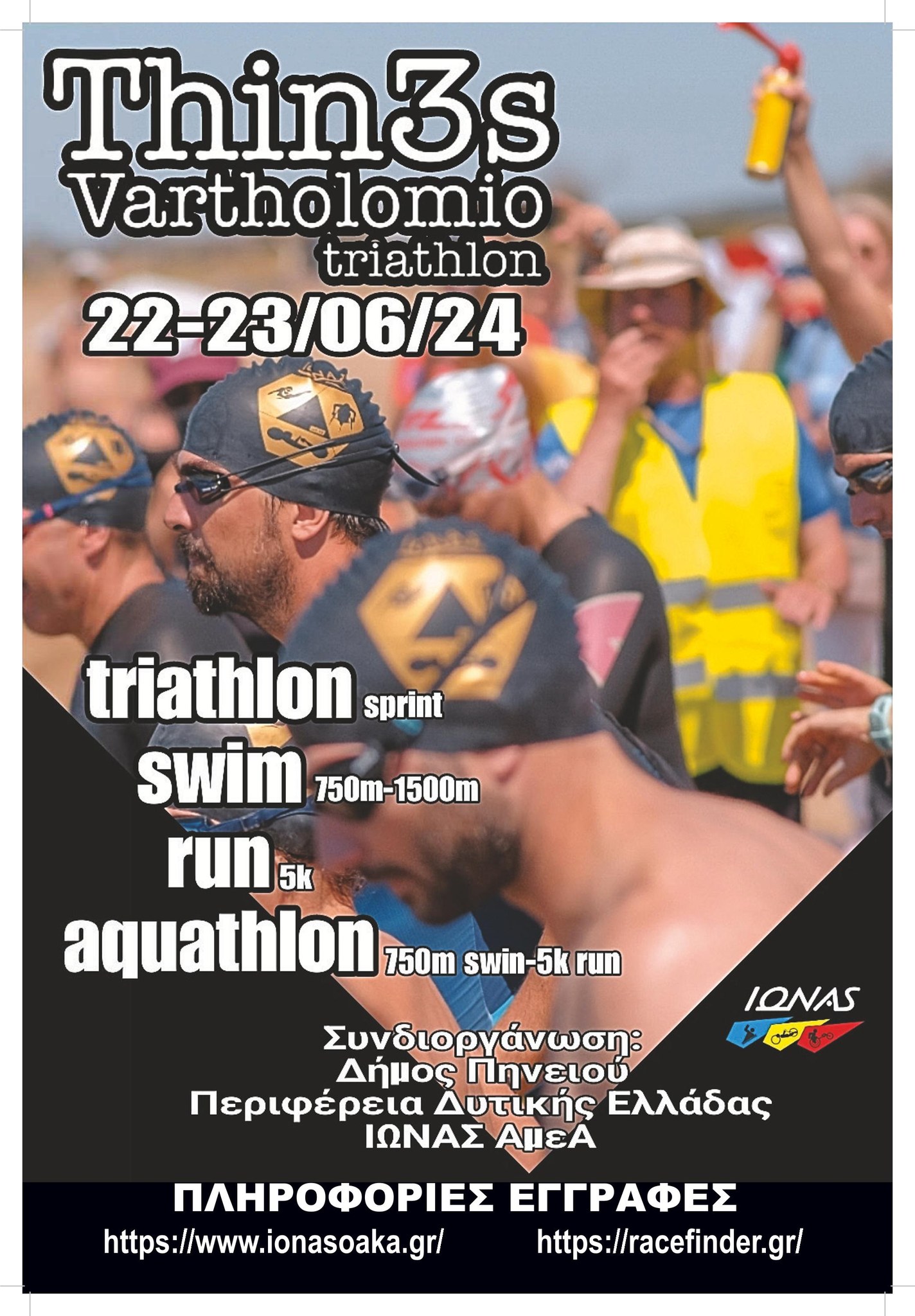 και 23 Ιουνίου. Το Thin3s Vartholomio Triathlon διοργανώνεται από το Σωματείο Ιωνάς –