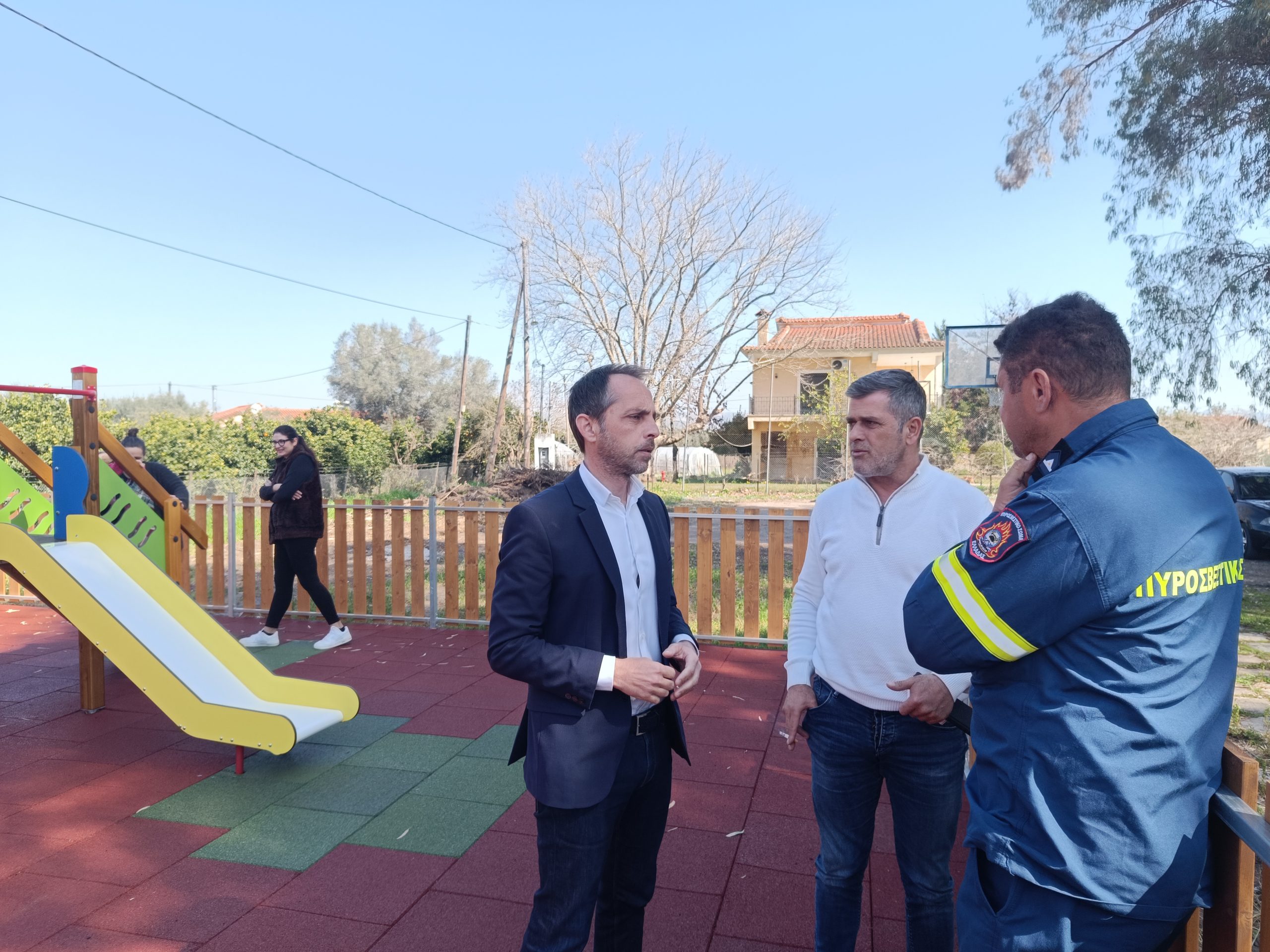 Ο Δήμαρχος Αρχαίας Ολυμπίας, Αριστείδης Παναγιωτόπουλος, μαζί με τον αρμόδιο Αντιδήμαρχο Τεχνικών Υπηρεσιών, Γιώργο Λινάρδο, τον Γραμματέα του Δ.Σ., Κώστα Τζούβαλη, τον Εντεταλμένο Δημοτικό Σύμβουλο, Αντώνη Μουζή και τον Πρόεδρο της Τ.Κ. Στρεφίου, Κώστα Παναγιωτακόπουλο, επισκέφτηκαν την τρίτη καινούρια παιδική χαρά της νέας Δημοτικής Αρχής, η οποία πληροί όλες τις προδιαγραφές ασφαλείας σύμφωνα µε την κείμενη νομοθεσία και στην οποία τοποθετήθηκαν τσουλήθρα, κούνιες, τραμπάλες, ελαστικό δάπεδο, παγκάκια, ασφαλή περίφραξη, κ.α.