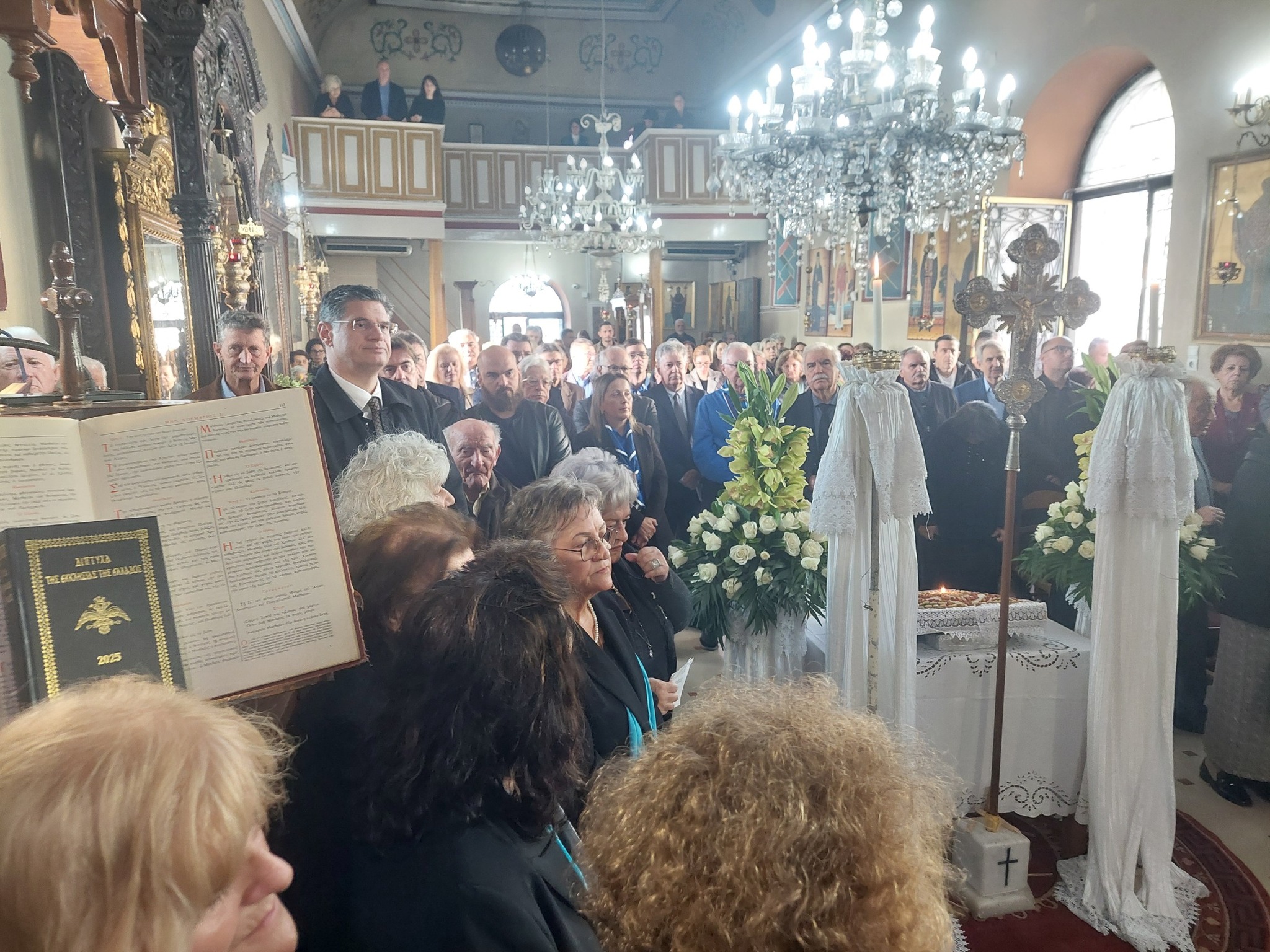 Ανάμεσα στο πυκνό εκκλησίασμα ο βουλευτής κ. Διονύσης Καλαματιανός , ο Δήμαρχος Πύργου κ.Στάθης Καννής,ο Αντ/ρχος κ.Θ.Κόρδας ,ο Πρόεδρος της Βιβλιοθήκης κ.Γ.Νικολόπουλος, οι Πρόεδροι Αποστράτων κ.κ.Ζ.Υφαντής,Θ.Τσιγκρέλης,Β.