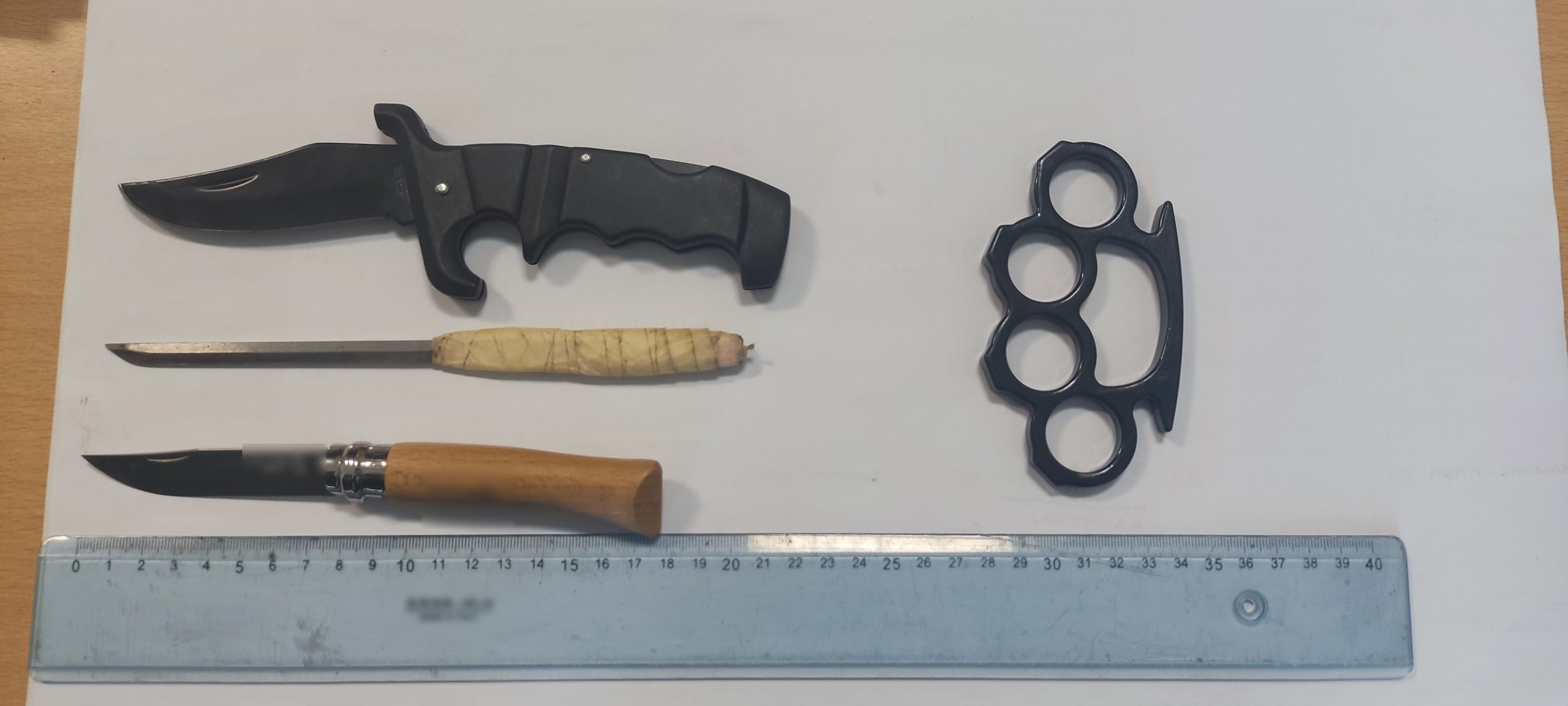 • Ένα στρατιωτικό μαχαίρι, ένα σουγιά και ένα μεταλλικό ξιφίδιο.