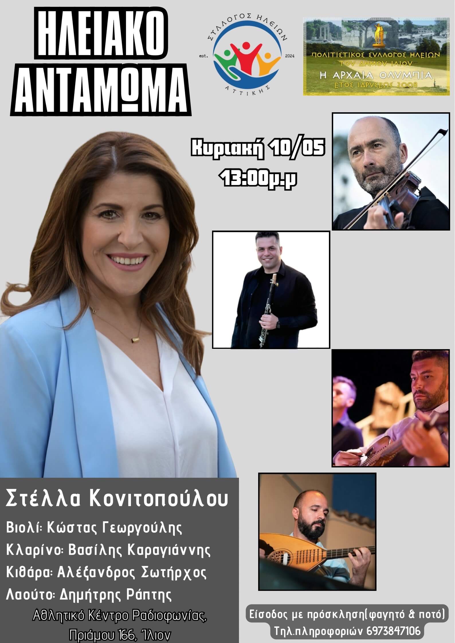 Στην εκδήλωση θα απολαύσουμε ζωντανή μουσική με την εξαιρετική Στέλλα Κονιτοπούλου. Μαζί της θα είναι: