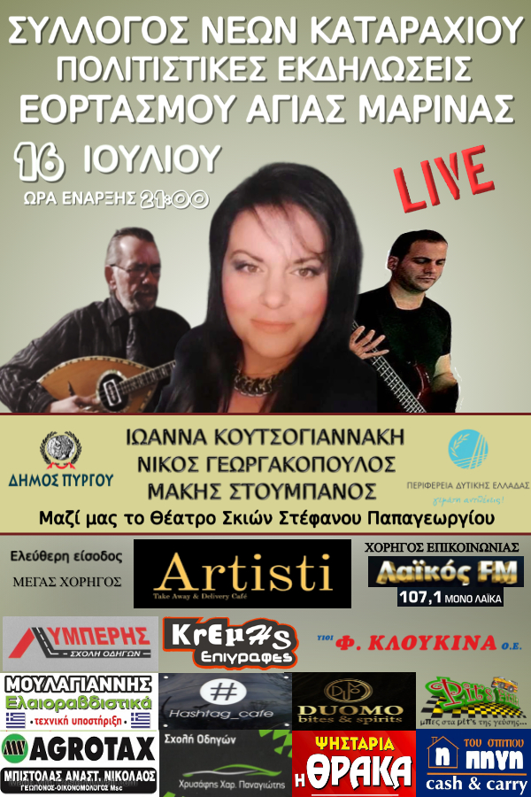 Όπως κάθε χρόνο, έτσι και φέτος, ο Σύλλογος Νέων Καταραχίου θα πραγματοποιήσει στις 16 Ιουλίου, πολιτιστικές εκδηλώσεις για τον εορτασμό της Αγίας Μαρίνας στο Καταράχι.