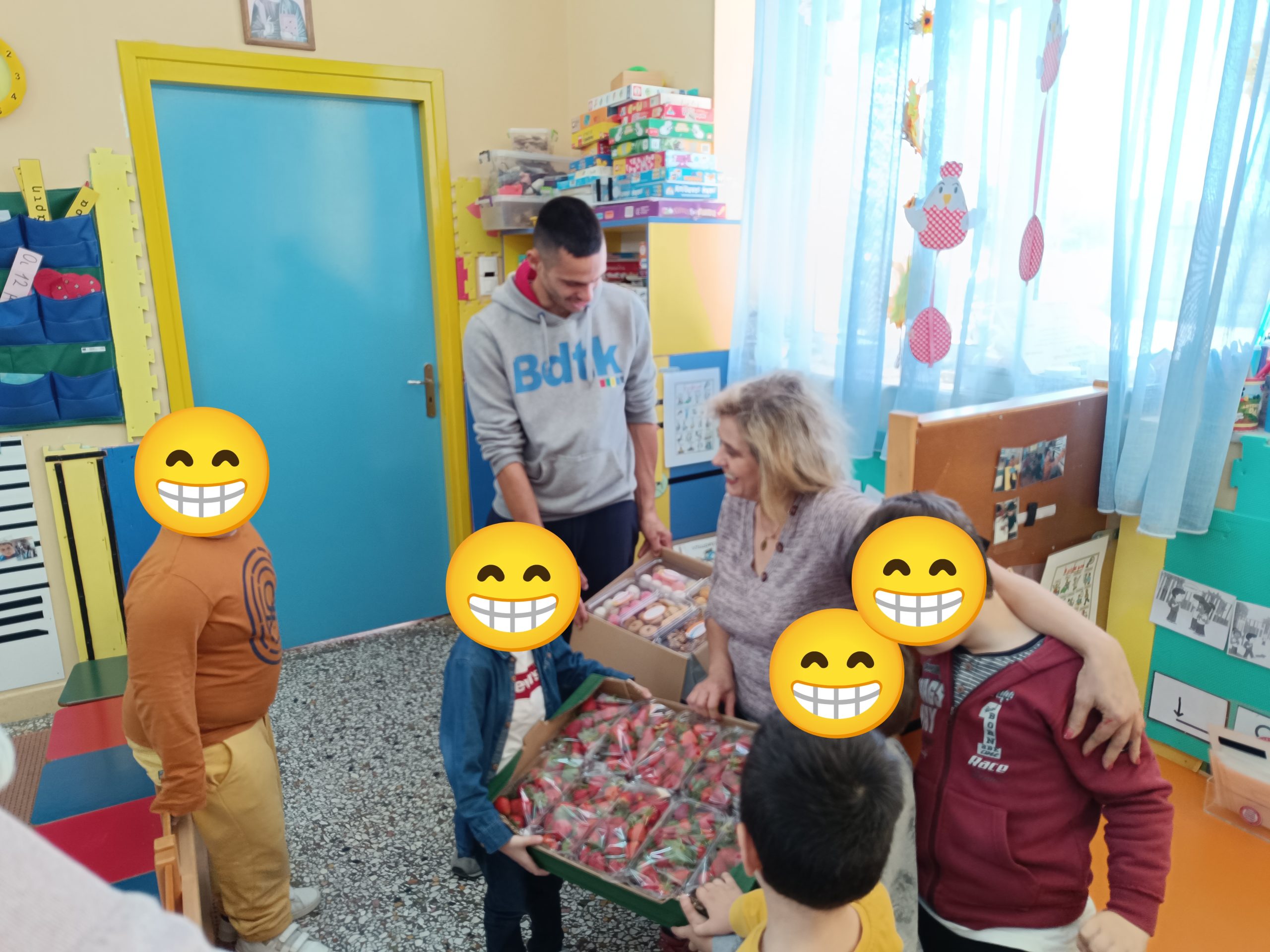Έπειτα από συνεννόηση με τις διευθύντριες των δύο σχολείων, επισκεφτήκαμε τα νηπιαγωγεία, καταγράψαμε τυχόν προβλήματα στον αύλειο χώρο και προσφέραμε στους μαθητές φρούτα και παραδοσιακά γλυκίσματα από το κατάστημα Μελο…δίες, που πάντα ανταποκρίνεται στα καλέσματα μας.