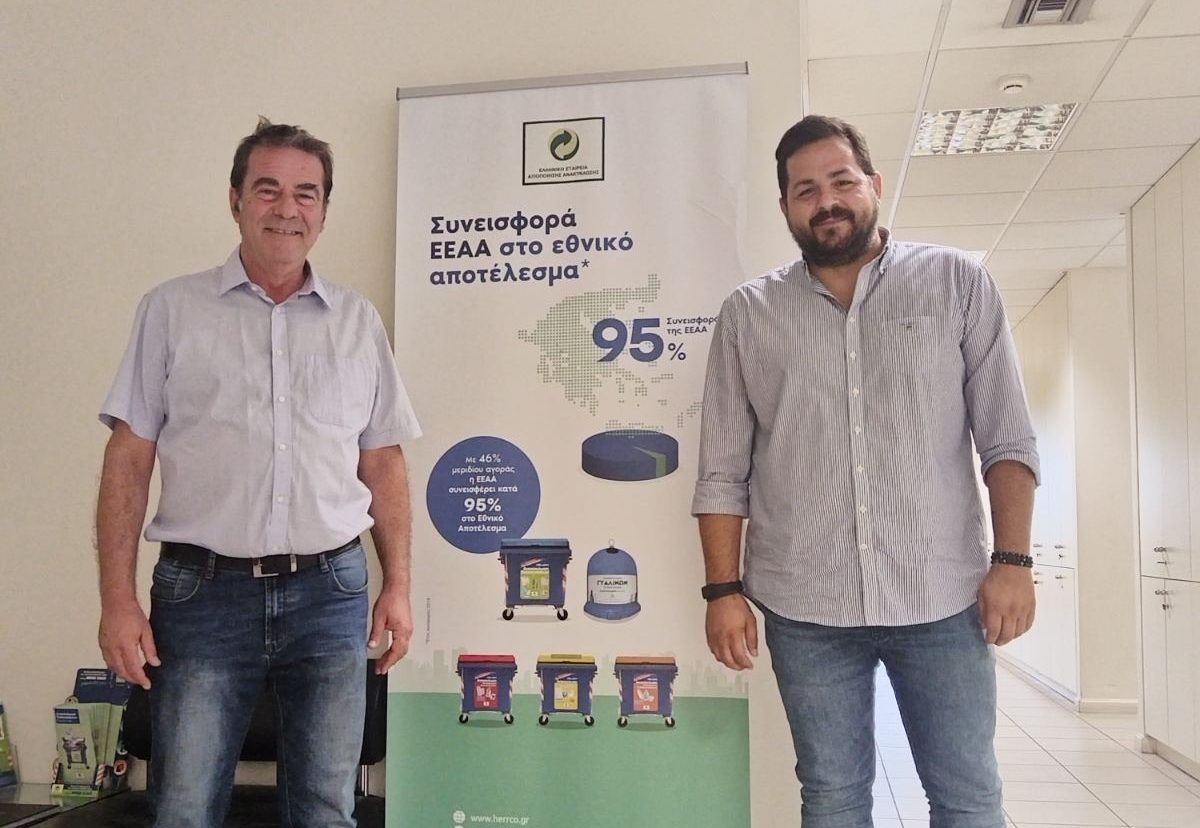 Οι δυνατότητες αξιοποίησης τρόπων για τη διεύρυνση της ανακύκλωσης σε όλα τα είδη και την αύξηση των υλικών που φθάνουν στο Κ.Δ.Α.Υ., εξετάστηκαν κατά την διάρκεια της συνάντησης που είχε ο Αντιδήμαρχος Περιβάλλοντος, Καθαριότητας, Ανακύκλωσης και Πρασίνου κ. Βασίλης Φάμελος με τον υπεύθυνο του Τμήματος ΟΤΑ της Ε.Ε.Α.Α κ. Δημήτρη Παπασωτηρίου στην Αθήνα.