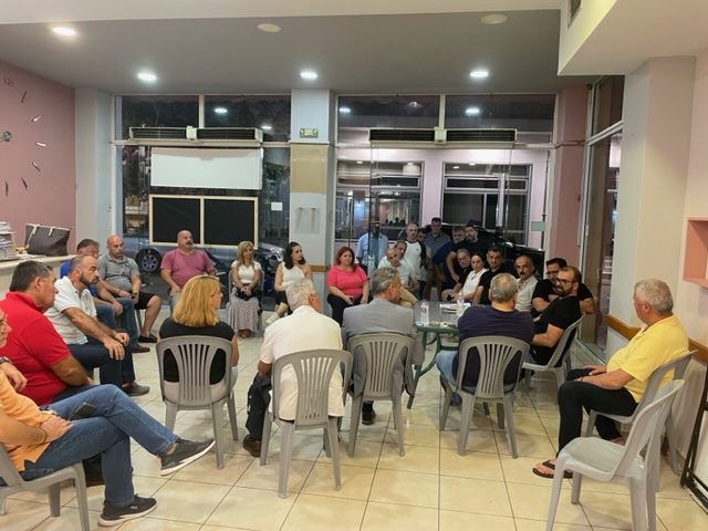 Ο Υποψήφιος Δήμαρχος Αλέξιος Καστρινός πραγματοποίησε συνάντηση στο Εκλογικό Κέντρο Βαρθολομιού του συνδυασμού του ΕΝΩΤΙΚΗ ΔΥΝΑΜΗ ΠΡΟΟΠΤΙΚΗΣ με τα μέλη του Εμπορικού Συλλόγου Βαρθολομιού προκειμένου να συζητηθούν θέματα που αφορούν την αγορά της πόλης του Βαρθολομιού, τις εκδηλώσεις, τον τουρισμό, τις επιχειρήσεις, την ανάγκη αστυνόμευσης της