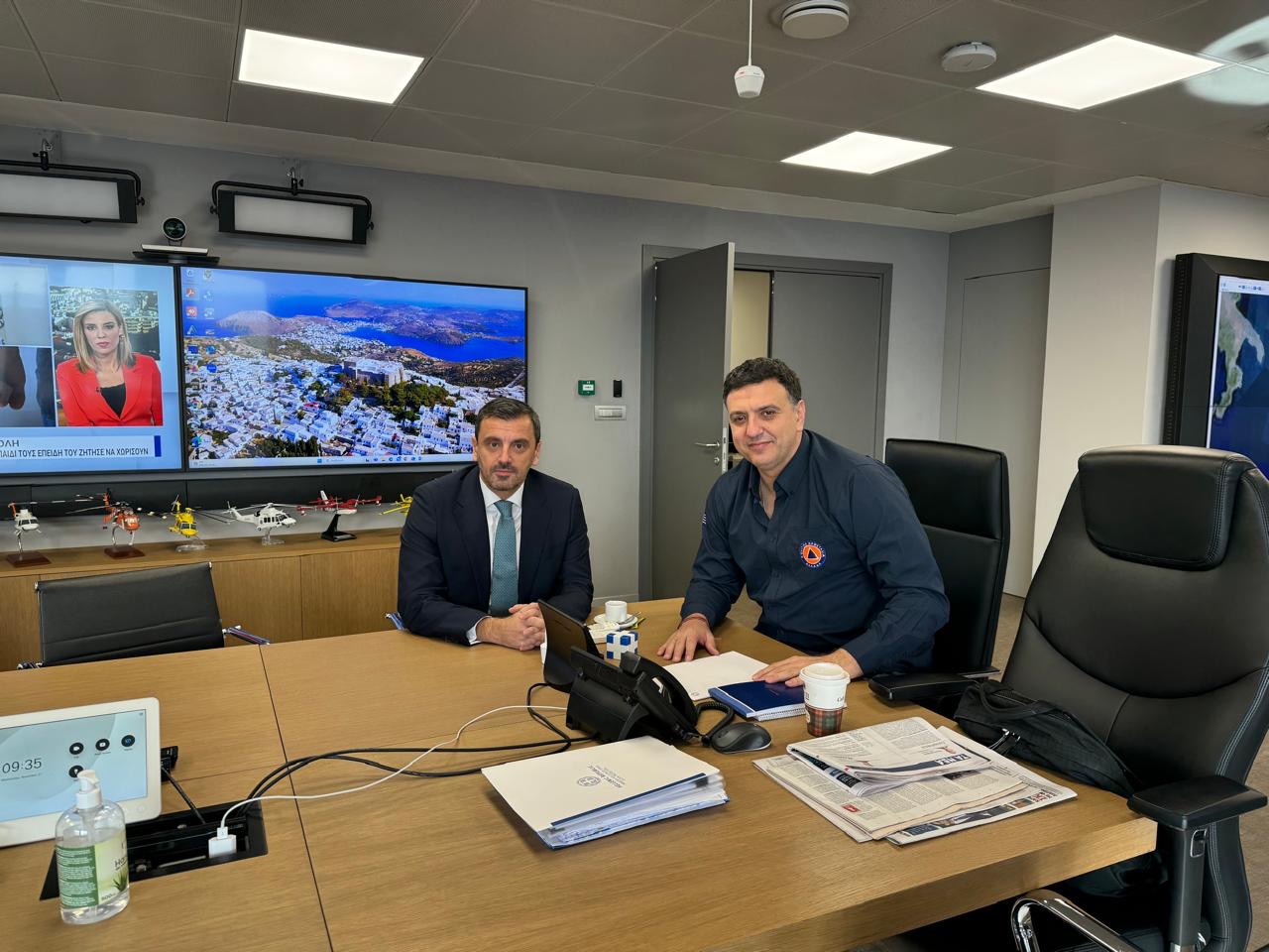 Η αποτίμηση της φετινής αντιπυρικής περιόδου στην Ηλεία ήταν το αντικείμενο της συνάντησης που είχαν ο Υπουργός Κλιματικής Κρίσης και Πολιτικής Προστασίας Βασίλης Κικίλιας και ο Υφυπουργός Προστασίας του Πολίτη Ανδρέας Νικολακόπουλος