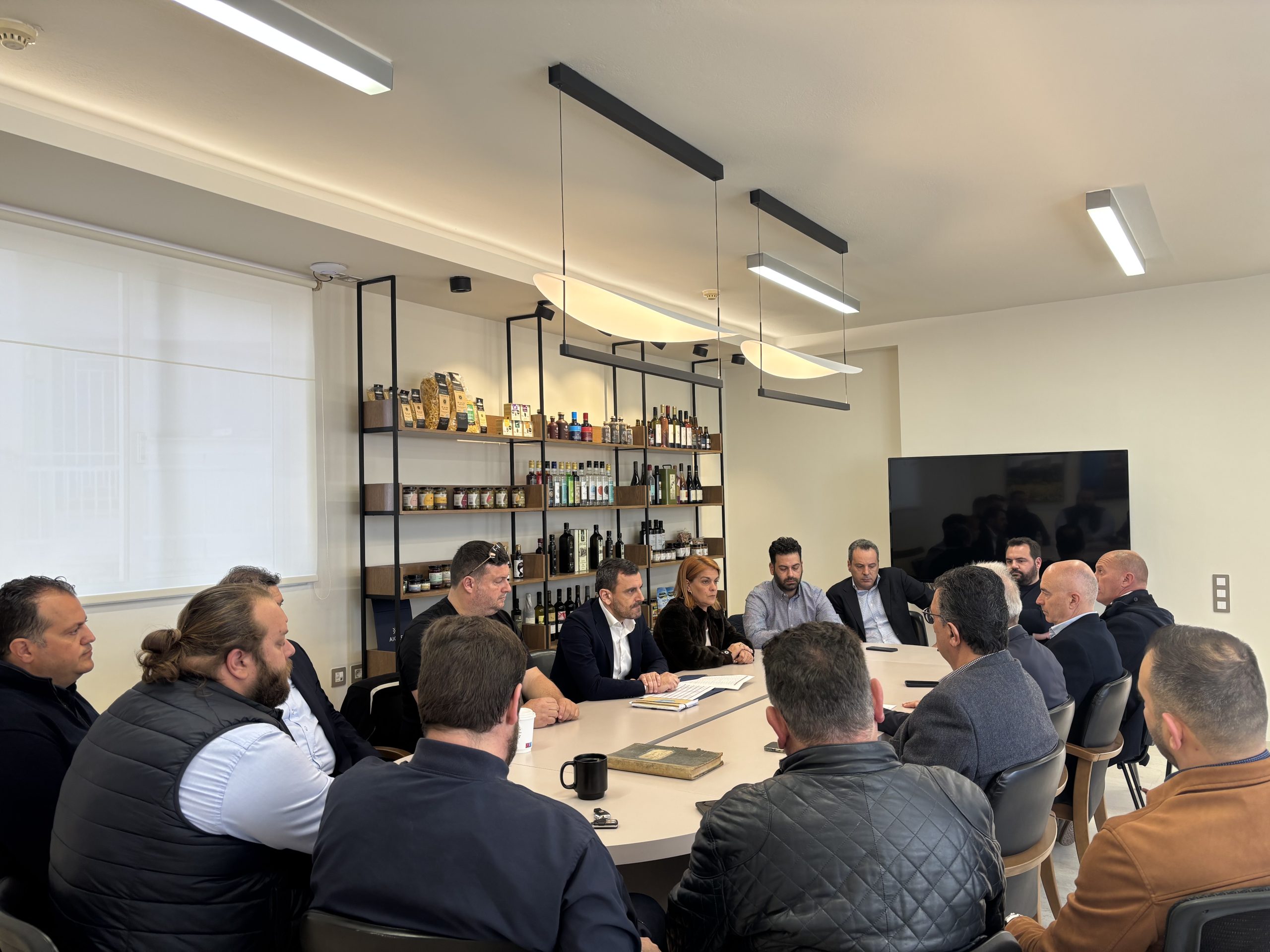 Ασφαλώς η κουβέντα μας επεκτάθηκε και σε άλλα ζητήματα που απασχολούν την ανάπτυξη του νομού. Μιλήσαμε για την εξωστρέφεια των επιχειρήσεων, για τα ζητήματα που προκύπτουν για τις εξαγωγικές επιχειρήσεις μετά το θέμα των δασμών που η κυβέρνηση Τραμπ επέβαλλε στην Ευρώπη, καθώς και για άλλα ζητήματα που απασχολούν τις μικρές και πολύ μικρές επιχειρήσεις, όπως επίσης το θέμα των εργατών γης, το θέμα του μεγάλου προβλήματος που αρκετές επιχειρήσεις αντιμετωπίζουν από το τραπεζικό σύστημα, την δυσκολία δηλαδή που συναντούν για να λάβουν μικρές ή μεγαλύτερες οικονομικές χρηματοδοτήσεις.»