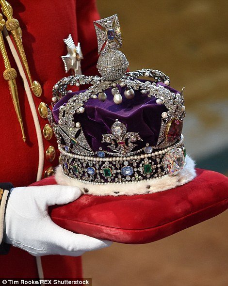Η Αυτοκρατορική Κορόνα του Κράτους (Imperial State Crown), από την άλλη, ζυγίζει κάτι παραπάνω από ένα κιλό, φορέθηκε από την Ελισάβετ στο τέλος της τελετής ενθρόνισης και έκτοτε η βασίλισσα τη φορά σε επίσημες τελετές και στην ετήσια έναρξη εργασιών του Βρετανικού Κοινοβουλίου. Είναι επενδυμένη με μοβ βελούδο και λευκή ερμίνα και έχει πάνω της 2.868 διαμάντια, 273 μαργαριτάρια, ζαφείρια, σμαράγδια και ρουμπίνια. Στο κέντρο της έχει το τέταρτο μεγαλύτερο διαμάντι του κόσμου, το Cullian Diamond (317 καράτια), που το 1909 αντικατέστησε το 21 γραμμαρίων ζαφείρι που υπήρχε. Συνήθως μεταφέρεται με οπλισμένους φρουρούς και τοποθετείται στο Robing Room, όπου η βασίλισσα φορά το Στέμμα πριν απευθυνθεί στα μέλη του Κοινοβουλίου, ενώ πολλές φορές την τοποθετεί δίπλα της σε ένα βελούδινο μαξιλάρι.
