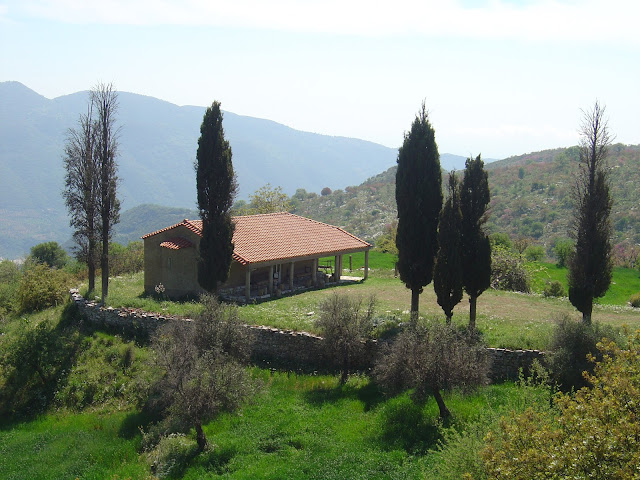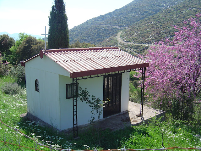 Βόρεια από το ξωκκλήσι σε απόσταση 150 μέτρων από τον αυτοκινητόδρομο το λιθόκτιστο παραδοσιακό εικονοστάσι του του Αγιώργη.