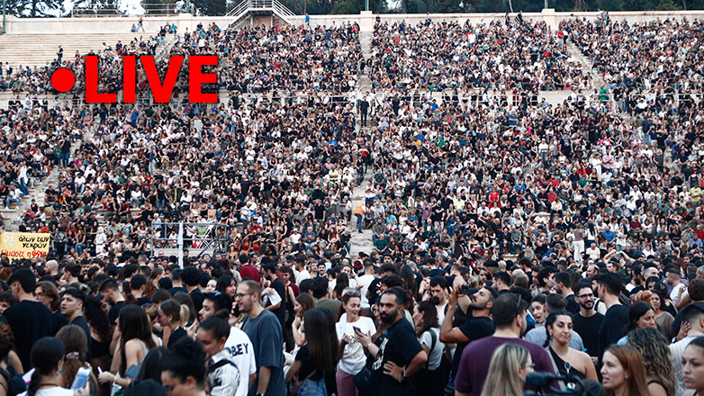 Σε εξέλιξη βρίσκεται αυτήν την ώρα η μεγάλη συναυλία μνήμης για τα 57 θύματα των Τεμπών, που διεξάγεται στο Καλλιμάρμαρο.