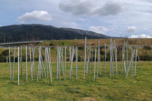 Άγνωστοι κατέστρεψαν το έργο «Τα 58 καρφιά» στα Τέμπη, που δημιουργήθηκε στη μνήμη των θυμάτων της σιδηροδρομικής τραγωδίας.