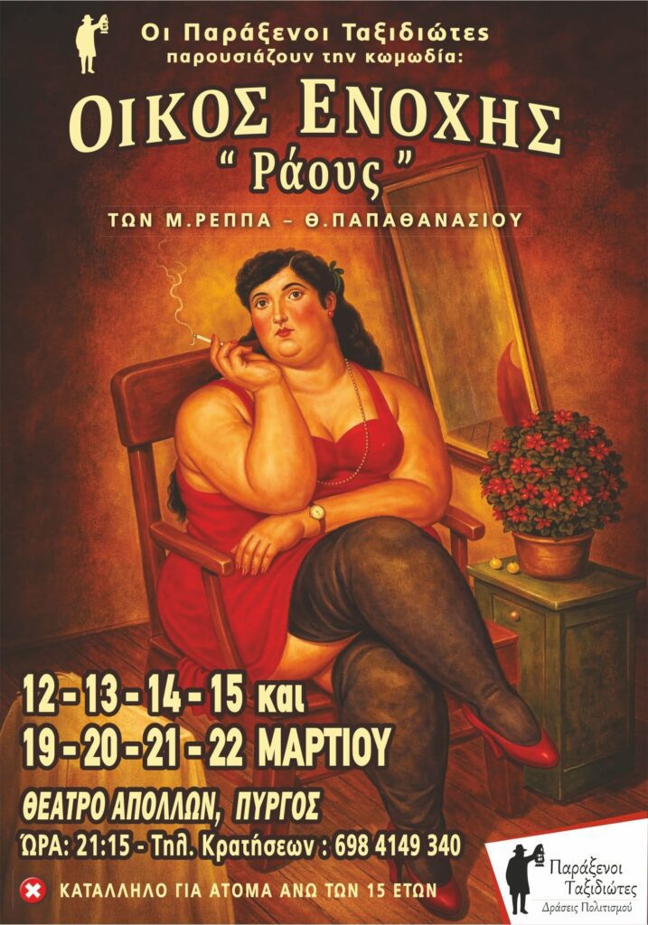 Μετά την επιτυχία της προηγούμενης παράστασής τους «Συμπέθεροι απ’ τα Τίρανα», η θεατρική ομάδα «Παράξενοι Ταξιδιώτες» επιστρέφει στη σκηνή με τη νέα της παραγωγή, παρουσιάζοντας την ξεκαρδιστική κωμωδία των Ρέππα – Παπαθανασίου «ΡΑΟΥΣ – Οίκος Ενοχής».
