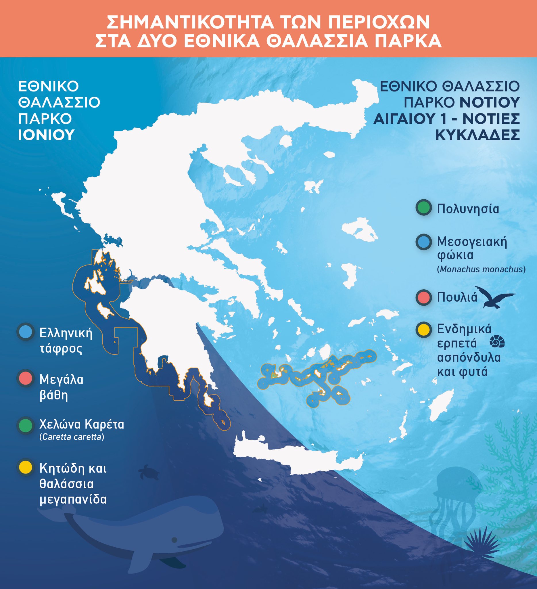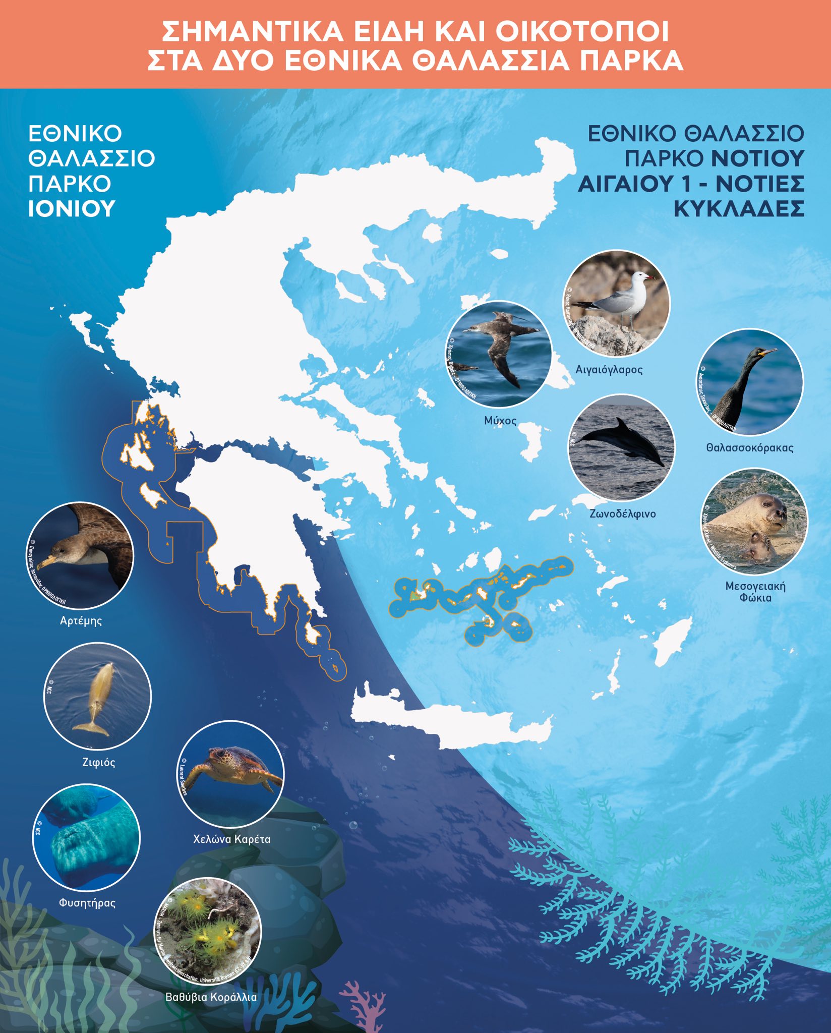 Το Θαλάσσιο Πάρκο Ιονίου μαζί με του Αιγαίου αποτελούν έναν φυσικό τόπο πλούσιο τόσο σε ομορφιά αλλά και στα διάφορα είδη ζώων και οργανισμών που κατοικούν σε αυτά. Γιαυτό τώρα με τον σχεδιασμό της κυβέρνησης θα μπουν σε προστασία και καλό είναι να γνωρίζουμε τι ζει και τι υπάρχει στα μέρη αυτά που αποτελούν κομμάτι της χώρας μας και συνυπάρχουν μαζί μας στο φυσικό περιβάλλον.