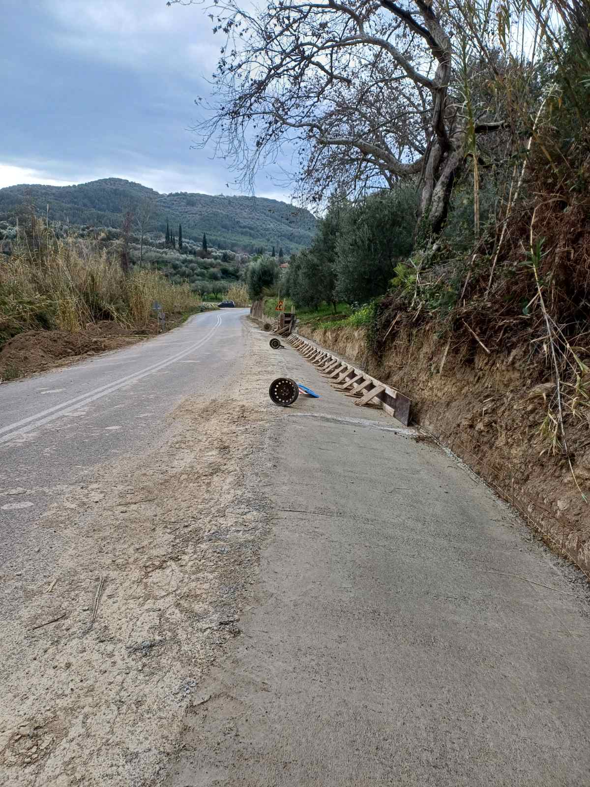 αποκατάσταση του οδοστρώματος με την κατασκευή επιχώματος, η διάνοιξη τάφρων σε
