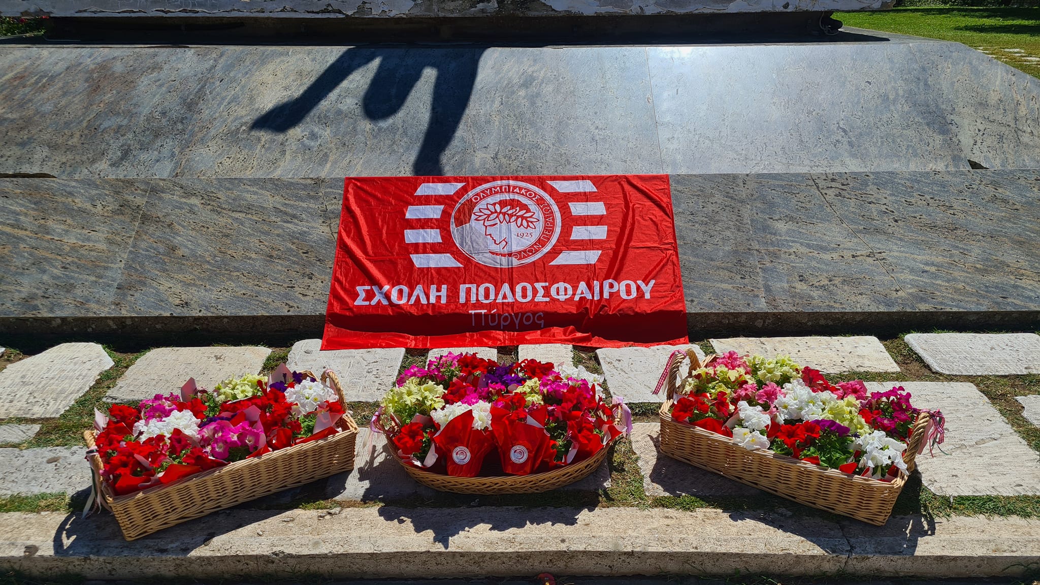Παράλληλα οι μικροί ποδοσφαιριστές στόλισαν ένα μεγάλο στεφάνι που δημιούργησε η Υπηρεσία Πρασίνου με μία μεγάλη καρδιά στο εσωτερικό, με λουλούδια που προσέφερε η Δ.Ε. Πύργου, εκφράζοντας έτσι την εκτίμηση και τον σεβασμό στον αφανή ήρωας της ίδιας της