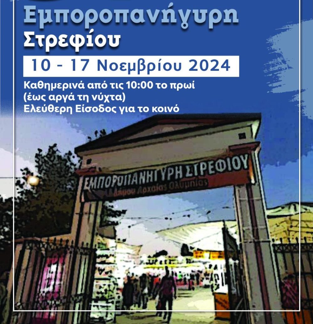 Την Κυριακή 10 Νοεμβρίου άνοιξε επίσημα για φέτος τις πύλες της η καθιερωμένη Εμποροπανήγυρη Στρεφίου, στον υπαίθριο εκθεσιακό χώρο στην Κοινότητα Στρεφίου του Δήμου Αρχαίας Ολυμπίας.