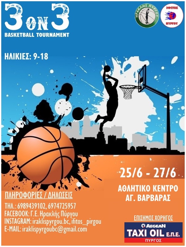 Η Γ.Ε. Ηρακλής Πύργου σε σταθερή συνεργασία με την Γ.Ε. Ίφιτος Πύργου διοργανώνουν την διεξαγωγή ενός Τουρνουά 3on3 στο Αθλητικό Κέντρο της Αγίας Βαρβάρας στον Πύργο. Το Τουρνουά θα διεξαχθεί το τριήμερο 25-27 Ιουνίου και θα απευθύνεται σε παιδιά και εφήβους ηλικίας 9-18 ετών.