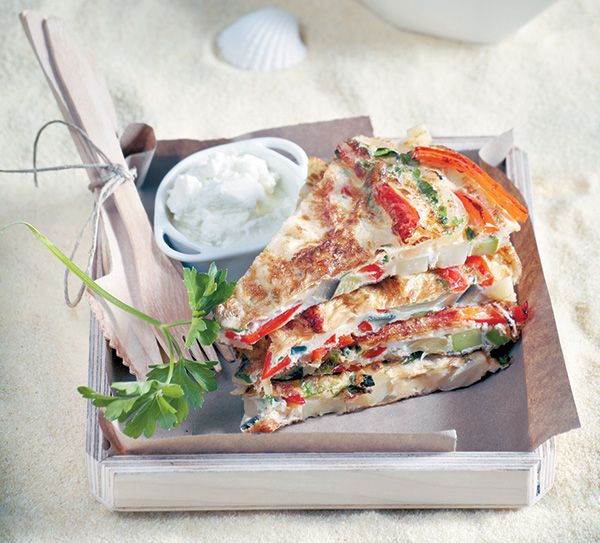 Η ισπανική εκδοχή της ομελέτας, η τορτίγια δηλαδή, εμπλουτίζεται με τα λαχανικά του ελληνικού μπριάμ και γίνεται ένα καλοκαιρινό και πολύ νόστιμο πιάτο.
