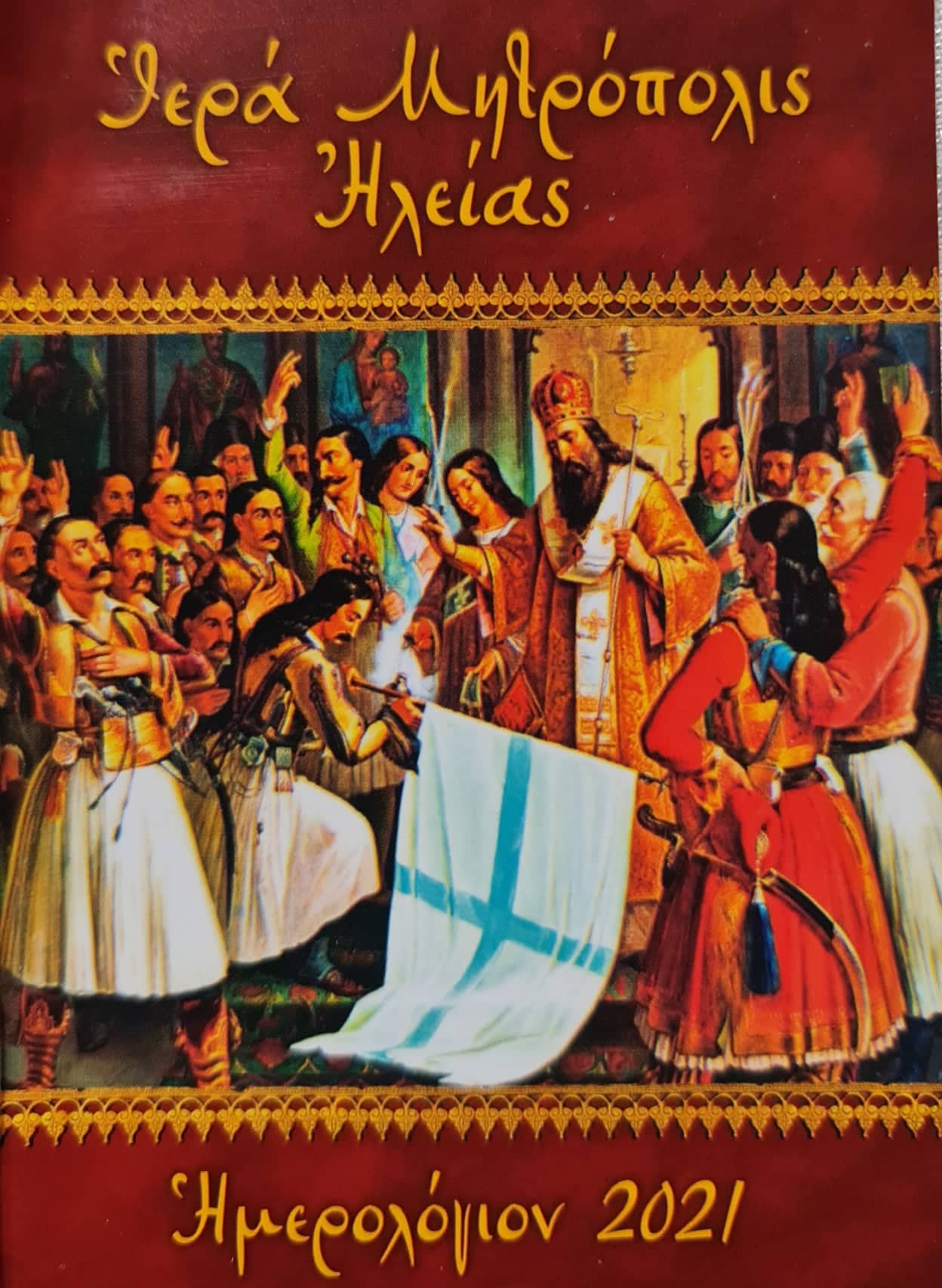 Είναι διανθισμένο με επίκαιρες φωτογραφίες του Δημοσιογράφου κ. Παναγιώτου Δημητρακόπουλου. Στο εξώφυλλο εικονίζεται o Παλαιών Πατρών Γερμανός στην Αγία Λαύρα ενώ ευλογεί τα όπλα και στο οπισθόφυλλο ο Εθνομάρτυρας Μητροπολίτης Ωλένης κυρός Φιλάρετος (1802-1821). Το Ημερολόγιο διατίθεται προς τους Ηλείους, αλλά και σε κάθε ενδιαφερόμενο αναγνώστη από τους Ιερούς Ναούς μας, τις Ιερές Μονές και το Βιβλιοπωλείο της Ιεράς Μητροπόλεώς μας, στην συμβολική τιμή του ενός (1) €υρώ. Τα δε έσοδα από την πώληση αυτού, κατατίθενται για την στήριξη και ενίσχυση του πολυσχιδούς Ιεραποστολικού και Φιλανθρωπικού έργου της Μητρόπολης. Αξίζει και πρέπει σε κάθε Ορθόδοξο Χριστιανικό σπίτι της τοπικής μας Εκκλησίας, να υπάρχει το εν λόγω Ημερολόγιο-Εορτολόγιο, ενισχύοντας έτσι το Θεάρεστο και πολυποίκιλο έργο της Ιεράς Μητροπόλεως Ηλείας, το οποίο είναι γνωστό εις όλους μας!.