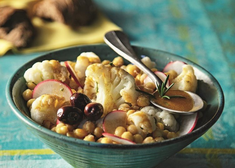 Ζεστή σαλάτα με κουνουπίδι και λεμονάτα ρεβίθια