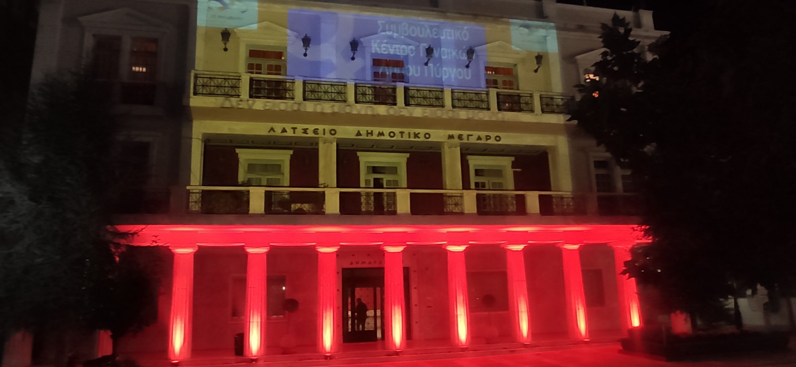 Με χρώματα και μηνύματα συνυφασμένα με τον αγώνα για την εξάλειψη της βίας κατά των γυναικών φωταγωγείται το Λάτσειο Δημοτικό Μέγαρο από το βράδι της Τετάρτης (23/11) μέχρι και την Παρασκευή 25/11. Παράλληλα από την όψη του κτιρίου περνούν μηνύματα εμψύχωσης και η τηλεφωνική γραμμή SOS 15900 όπου μπορούν να απευθυνθούν τα θύματα βίας με απόλυτη εχεμύθεια καθώς και η αφίσα του Συμβουλευτικού Κέντρου Γυναικών Δήμου Πύργου.