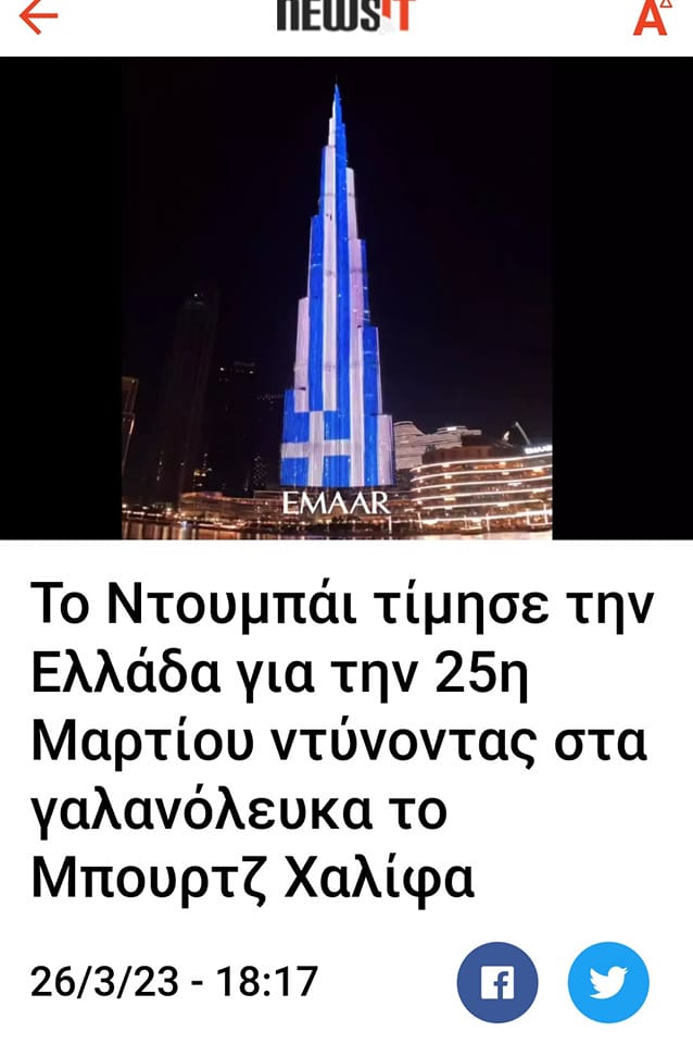 Το Ντουμπάι τίμησε την Ελλάδα για την 25η Μαρτίου