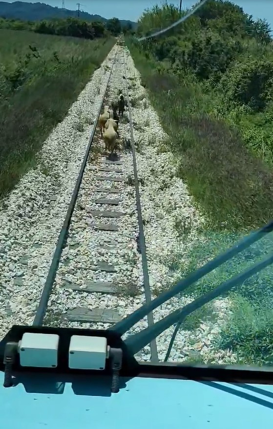 Όταν η σιδηροδρομική γραμμή δεν είναι περιφραγμένη, όπως σε όλη σχεδόν την Ευρώπη, τότε στην γραμμή βόσκουν πρόβατα και κατσίκες…