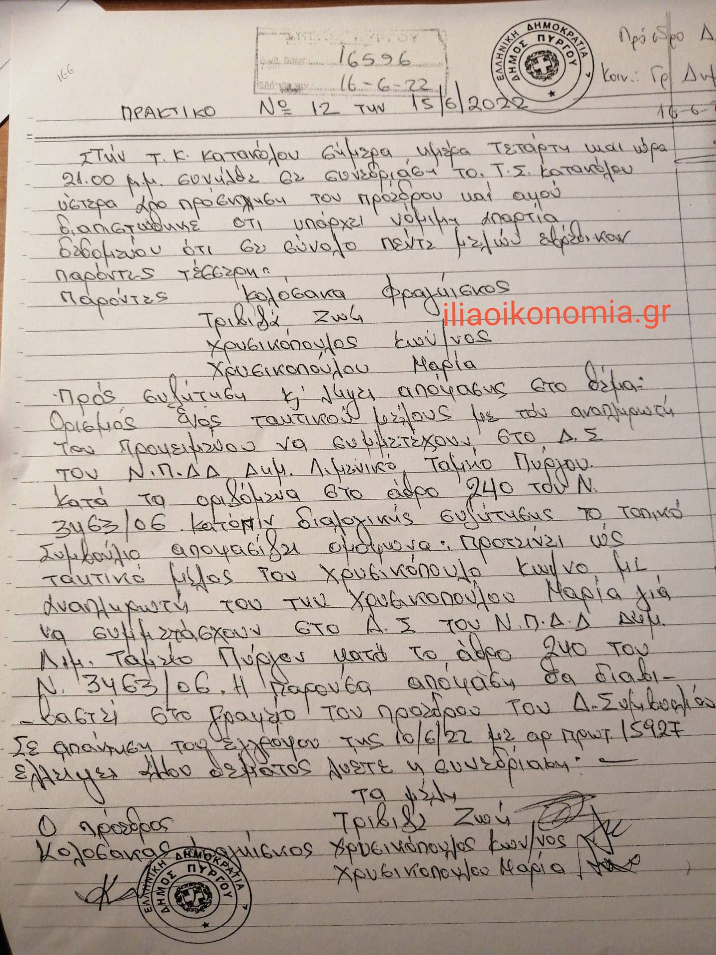 το κείμενο της απόφασης του Τοπικού Συμβουλίου Κατακόλου: