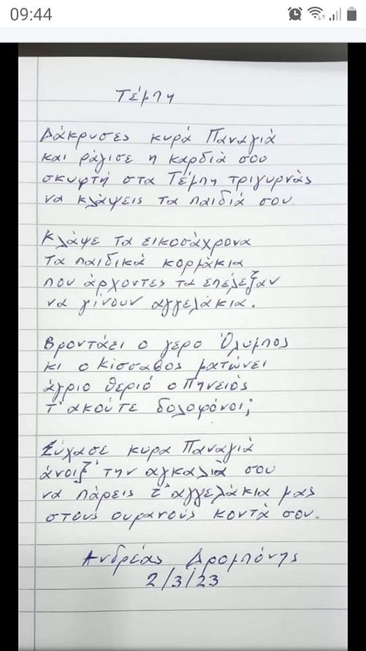 ΤΡΑΓΩΔΙΑ ΣΤΑ ΤΕΜΠΗ: Λίγοι στοίχοι από τον Ανδρέα Δρομπόνη