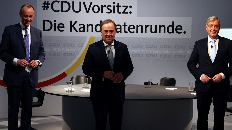 Ο Άρμιν Λάσετ ο πρωθυπουργός της Βόρειας Ρηνανίας-Βεστφαλίας, o Φρίντριχ Μερτς πρώην πρόεδρος της Κοινοβουλευτικής Ομάδας της Χριστιανικής Ένωσης (CDU/CSU) στη γερμανική κάτω βουλή και ο Νόρμπερτ Ρέτγκεν, πρόεδρος της Επιτροπής Εξωτερικών Υποθέσεων στο Bundestag, βρέθηκαν μαζί στην τελευταία τους τηλεμαχία πριν τις εσωκομματικές εκλογές των Χριστιανοδημοκρατών (CDU) της 16ης και 17ης Ιανουαρίου, κατά τη διάρκεια των οποίων χίλιοι και ένας σύνεδροι θα εκλέξουν, όχι απλώς τον επόμενο πρόεδρο του ισχυρότερου πολιτικού κόμματος της χώρας, αλλά, ενδεχομένως, τον διάδοχο της Άνγκελα Μέρκελ στην Καγκελαρία.
