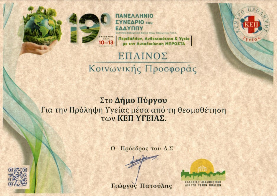 «Η πρόληψη σώζει ζωές . Υπενθυμίζουμε, λοιπόν, σε όλους τους συμπολίτες μας ότι πρέπει να εντάξουν τον τακτικό προληπτικό έλεγχο στη ζωή τους και για το λόγο αυτό καλούμε τους δημότες Πύργου να εγγραφούν στο λογισμικό των ΚΕΠ Υγείας μέσω της ηλεκτρονικής διεύθυνσης: https://exetaseis.kepygeias.org/identity/account/register μέσα από το site www.kepygeias.org, για να ενημερώνονται για τις δράσεις σχετικά με την Πρόληψη της Υγείας».