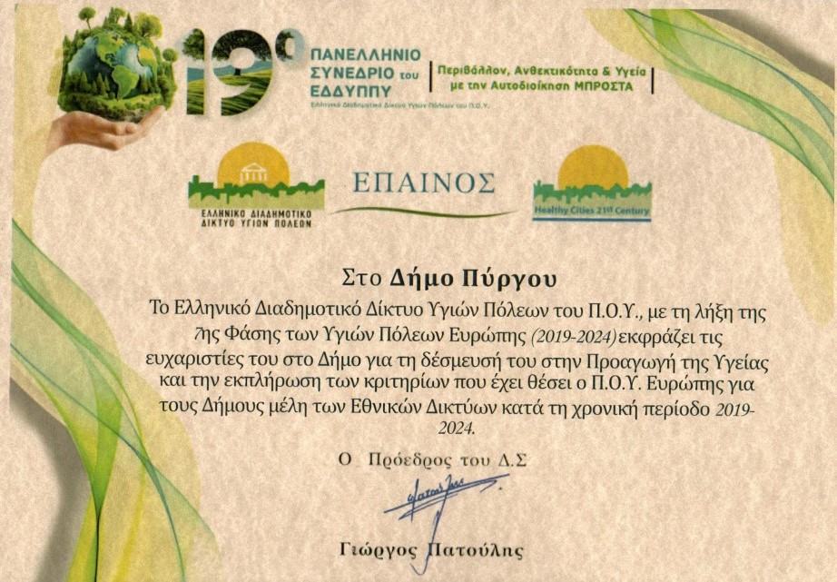αδιαμφισβήτητη απόδειξη. Επίσης καθοριστικό ρόλο έπαιξε και το γεγονός ότι ο Δήμος είναι συνεπής στην δέσμευσή του για την προαγωγή της υγείας των Δημοτών.