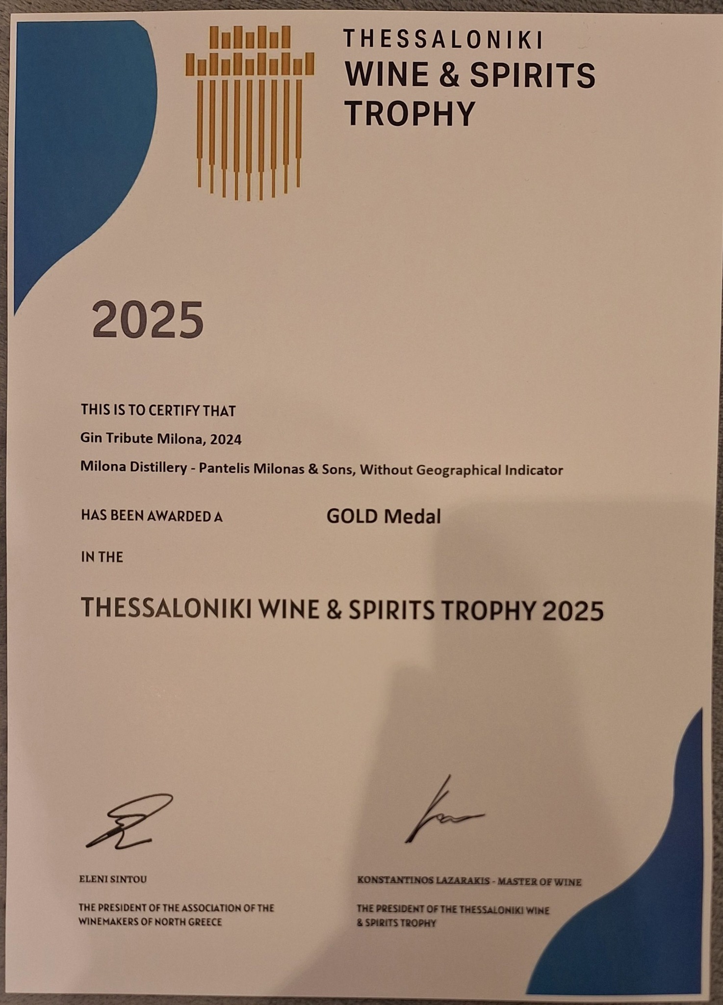 Η Ποτοποιία Μυλωνά, μια επιχείρηση από τον Πύργο,  βραβεύθηκε αυτές τις ημέρες στα πλαίσια του Διεθνή Διαγωνισμού οίνων και Αποσταγμάτων Θεσσαλονίκης, με Χρυσό Βραβείο για δεύτερη συνεχόμενη χρονιά για το Gin Tribute και επίσης με χρυσό βραβείο για ούζο Νο62.