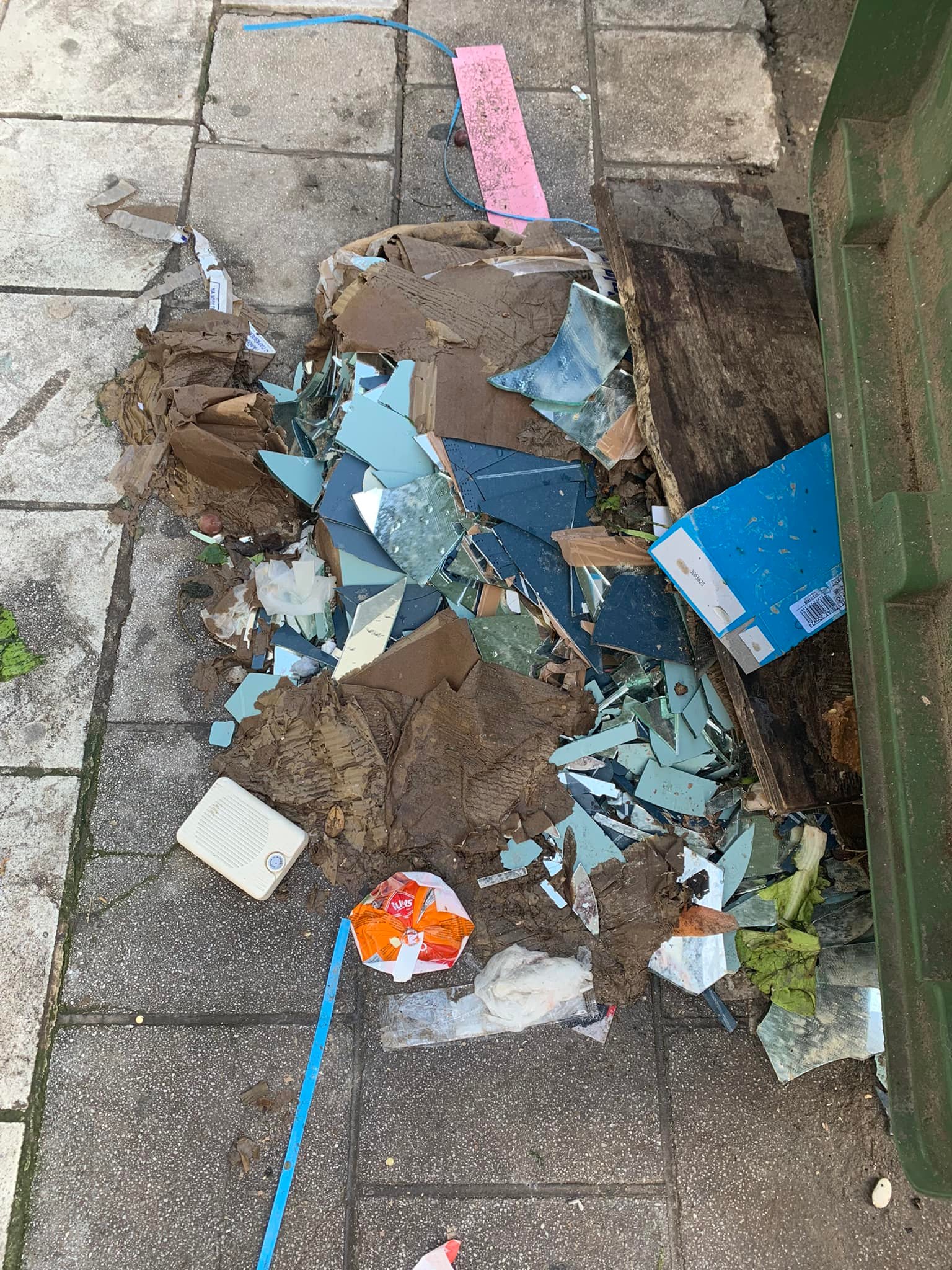Ένας ανεύθυνος δημότης άφησε στον κάδο το χαρτοκουτι με τους σπασμένους καθρέπτες χωρίς να σκεφτεί ποσο επικίνδυνο είναι για τον υπάλληλο καθαριότητας και για τους περαστικούς.