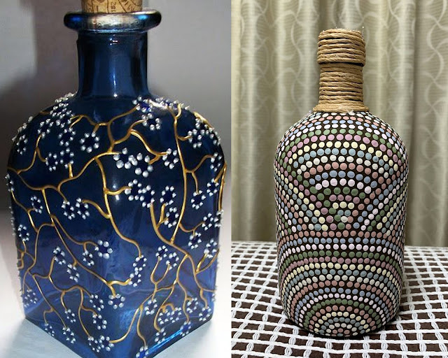 Εντυπωσιακή όψη μπορούν να αποκτήσουν κοινά γυάλινα μπουκάλια ακόμη και αν το μεγαλύτερο μέρος της επιφάνειάς τους παραμείνει στην φυσική του όψη και απλά προστεθούν με ζωγραφική απλά σχέδια σε έντονες αποχρώσεις και μαύρο περίγραμμα.