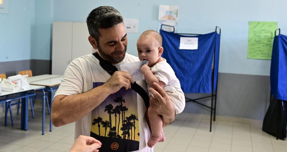 Παιδιά, σκυλιά… γαμπροί και νύφες δίνουν το «παρών» από νωρίς το πρωί στα διάφορα εκλογικά τμήματα της χώρας.