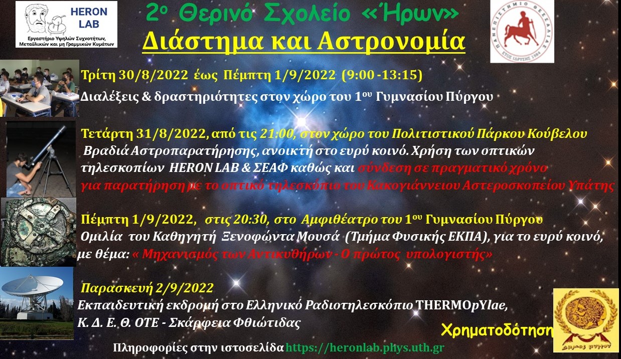 Σεπτεμβρίου το 2 ο θερινό σχολείο «ΗΡΩΝ» με θέμα «Διάστημα και
