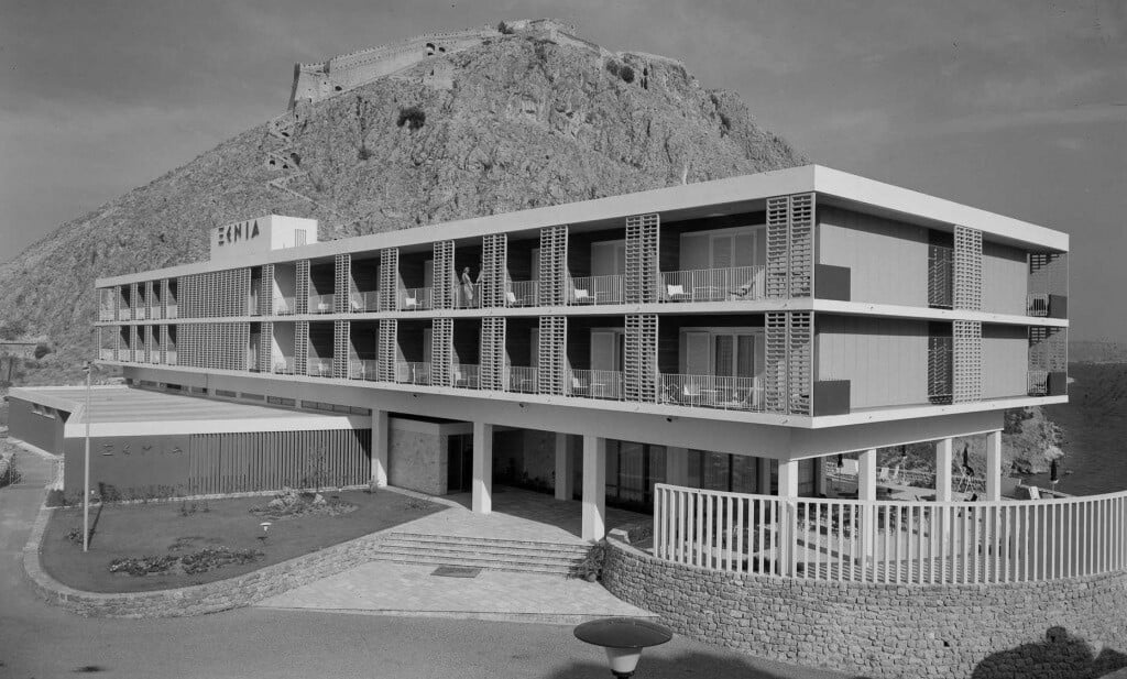 Αν δούμε πώς χτίζεται, π.χ., η Ρόδος ή η Χαλκιδική την επόμενη δεκαετία, δηλαδή το ’60 και το ’70, θα καταλάβουμε πόσο δημοφιλής είχε γίνει η υιοθέτηση του λεγόμενου “διεθνούς στυλ” στην αισθητική των ξενοδοχείων. Αντίθετα, οι μικροί “σπασμένοι” όγκοι και τα τοπικά υλικά του δικτύου των “Ξενία” εγκαταλείφθηκαν σταδιακά, εξαιτίας των συγκροτητικών προβλημάτων που είχαν: μικρό δυναμικό και ασκητικές εγκαταστάσεις, ενδεικτικές μιας αρχιτεκτονικής του ελάχιστου χωρικού ίχνους. Δηλαδή, η διαμονή σε ένα “Ξενία” ήταν μια εμπειρία της ελάχιστης θερινής διαβίωσης. Δεν προσέφερε την πολυτέλεια ενός Hilton. Τα “Ξενία” σπάνια είχαν πισίνα, όπως ο Αμφιτρύων του Ναυπλίου (1951, 1956), ενώ μερικές φορές είχαν κοινόχρηστα μπάνια και στερούνταν κεντρικού κλιματισμού, λόγω του χαμηλού προϋπολογισμού, αλλά και εξαιτίας της διαφορετικής κουλτούρας τουριστικής ανάπτυξης που πρέσβευαν”.
