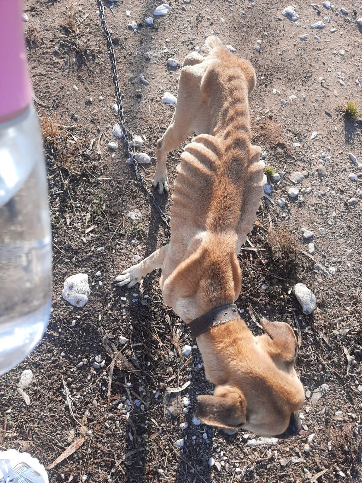 Καλέσαμε άμεσα την αστυνομία και αυτή τη στιγμή είμαστε στο τμήμα. Το σκυλί είναι σε άθλια κατάσταση, δεν μπορεί να σταθεί όρθιο και δεν είμαστε σίγουροι αν θα τα καταφέρει καθώς είναι ένα βήμα πριν το κώμα. Είμαστε στον δρόμο για τον κτηνίατρο και θα σας ενημερώσουμε.