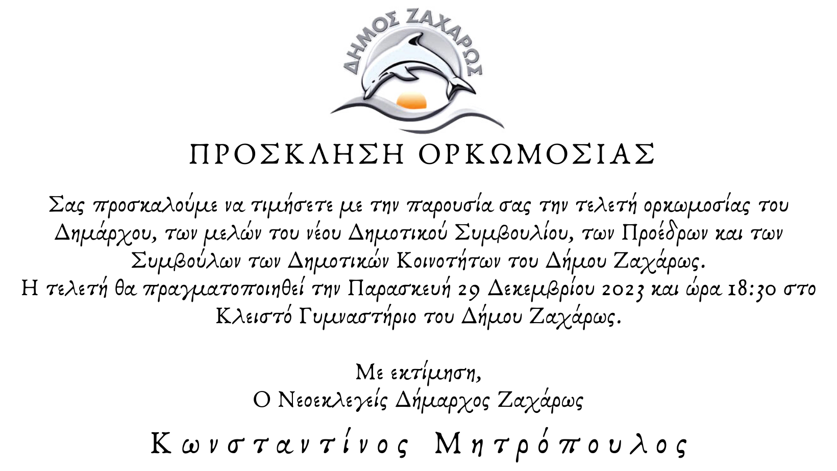 Ζαχάρω: Την Παρασκευή η ορκωμοσία του νέου Δημάρχου Κ. Μητρόπουλου