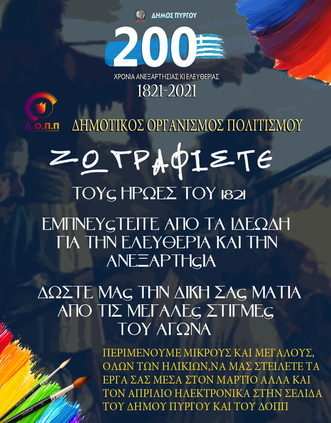 Περιμένουμε τις συμμετοχές σας στην δράση του Δημοτικού Οργανισμού Πολιτισμού για τα 200 χρόνια από την Επανάσταση του 1821.